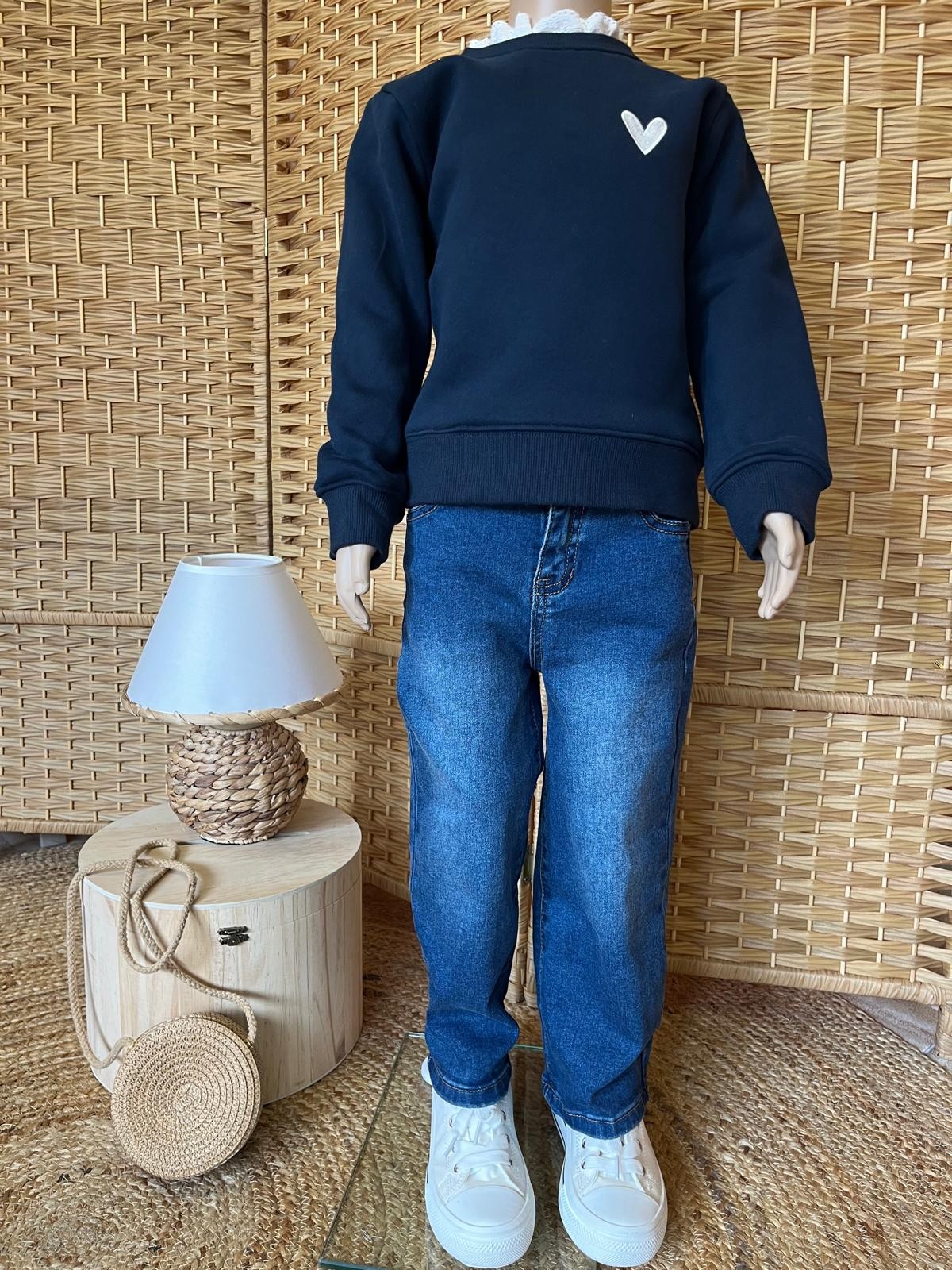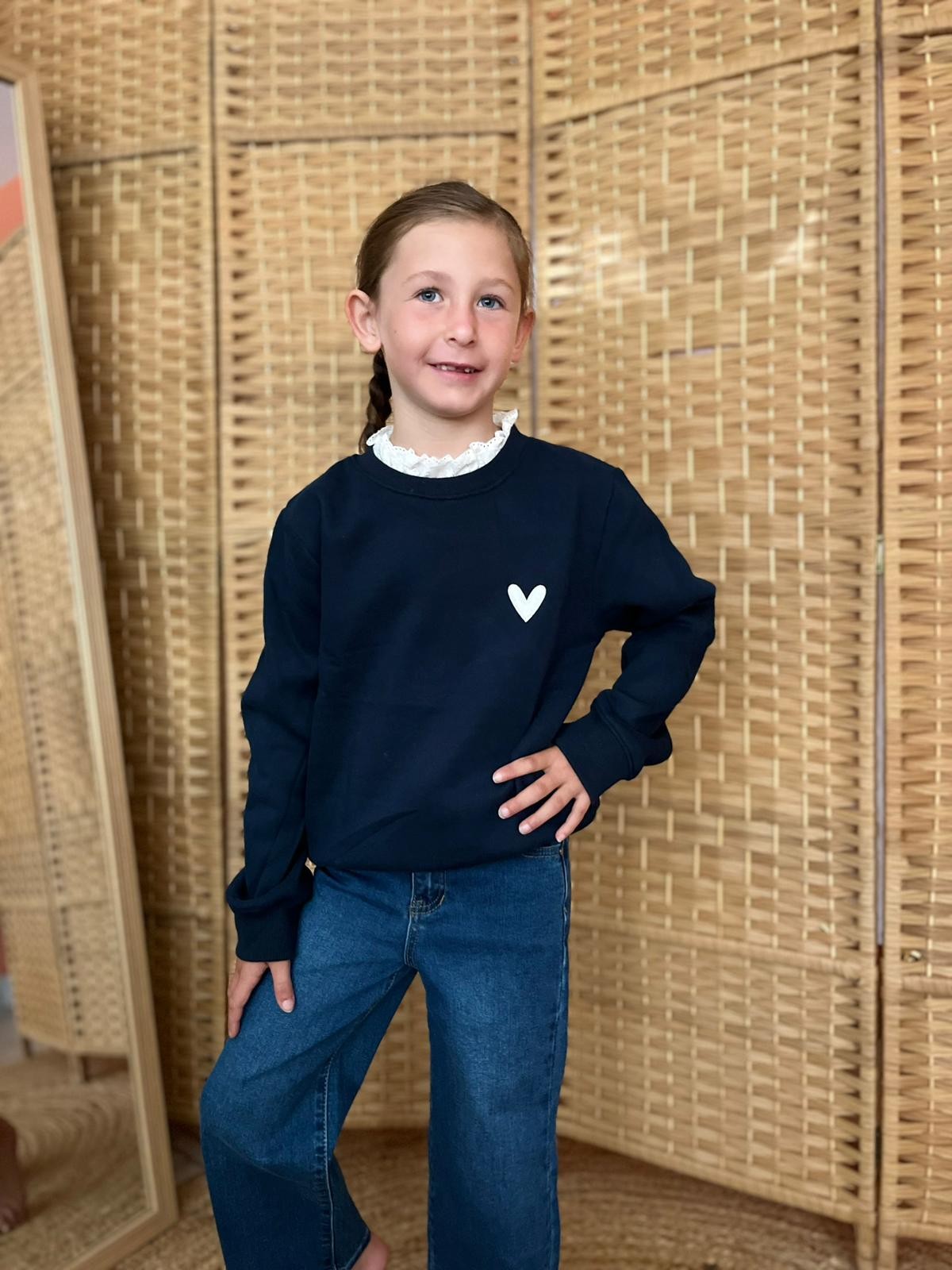 Sweat bleu marine, coeur écru