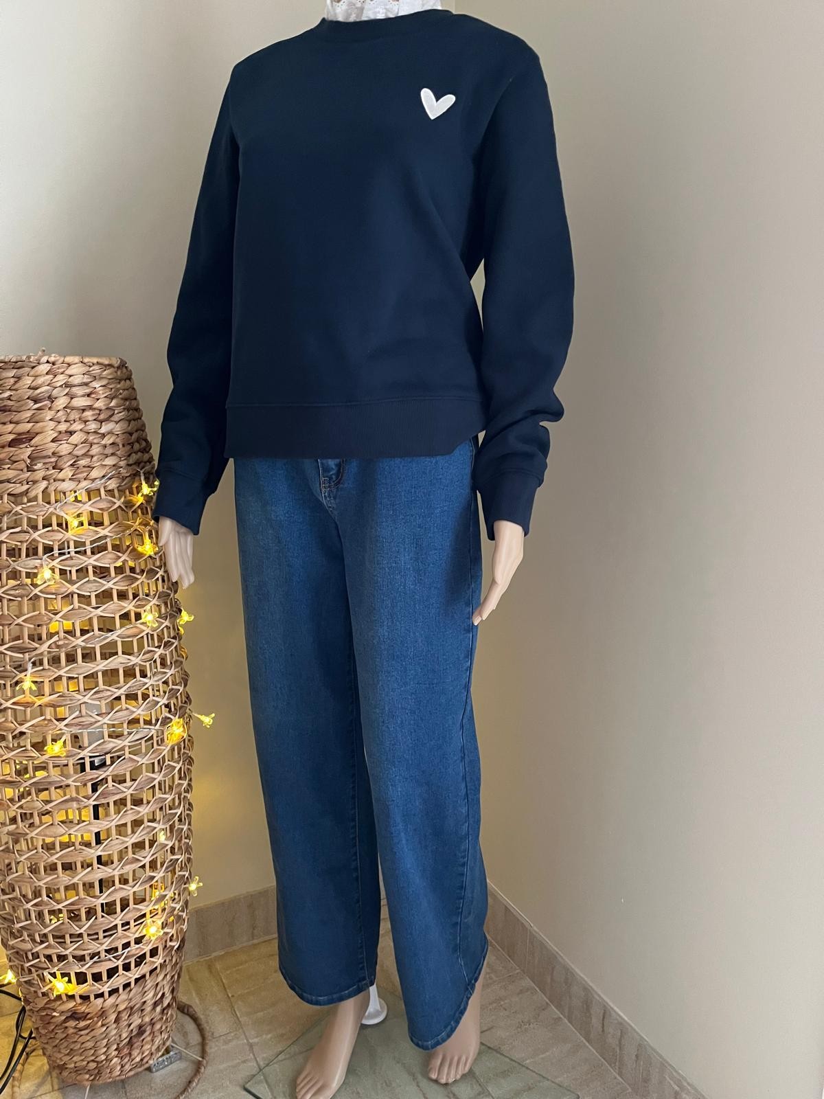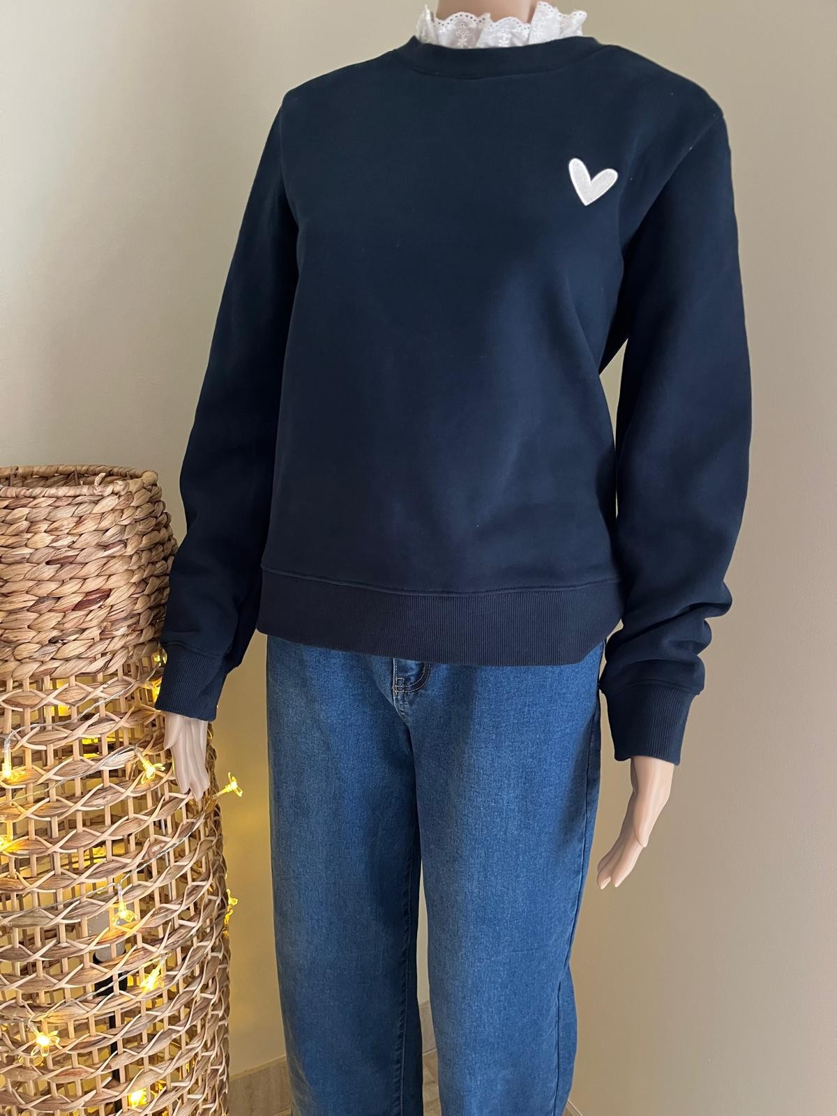 Sweat marine, cœur écru