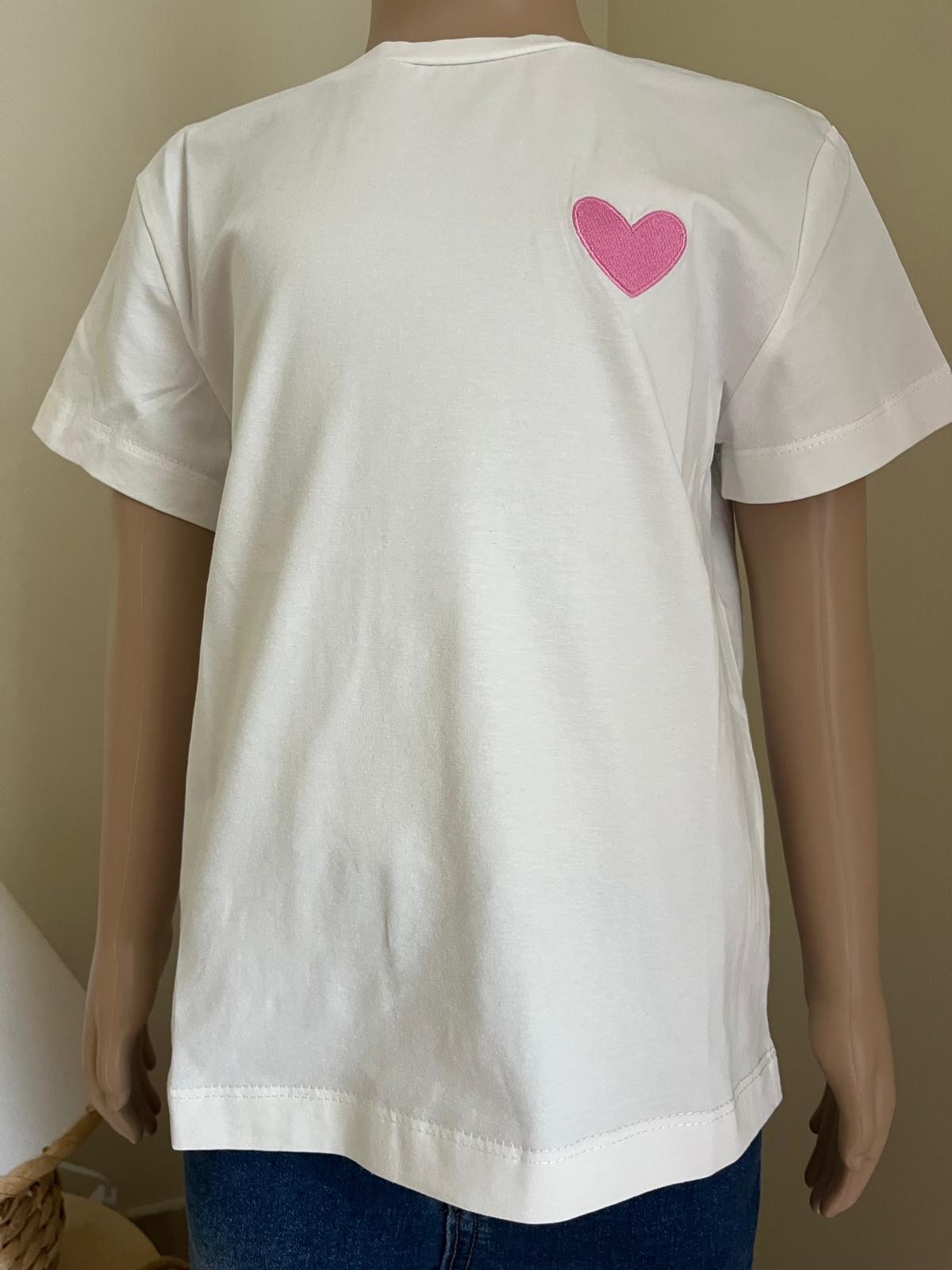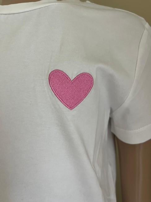 Tee-shirt blanc cœur - Rose