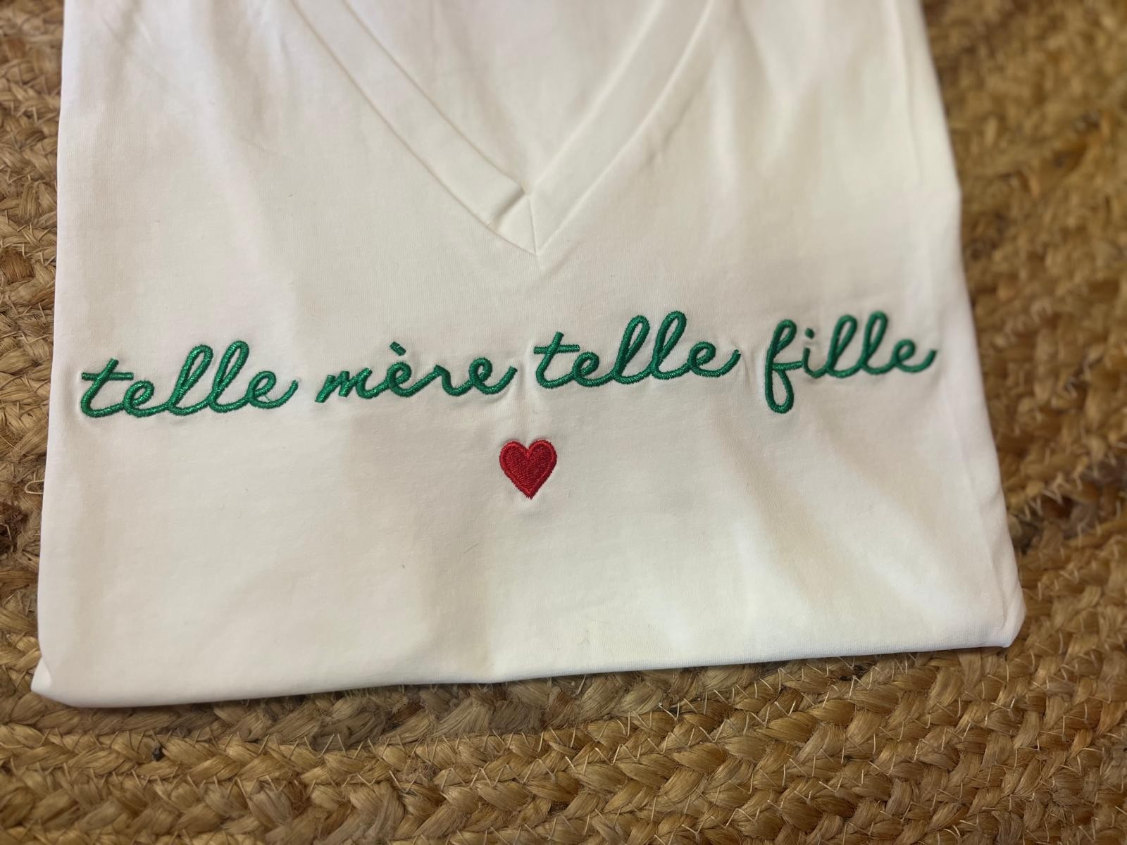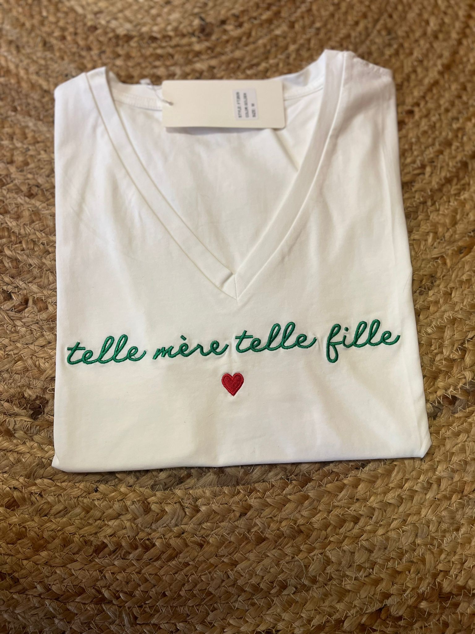 Tee-shirt blanc Telle mère telle fille - Vert foncé