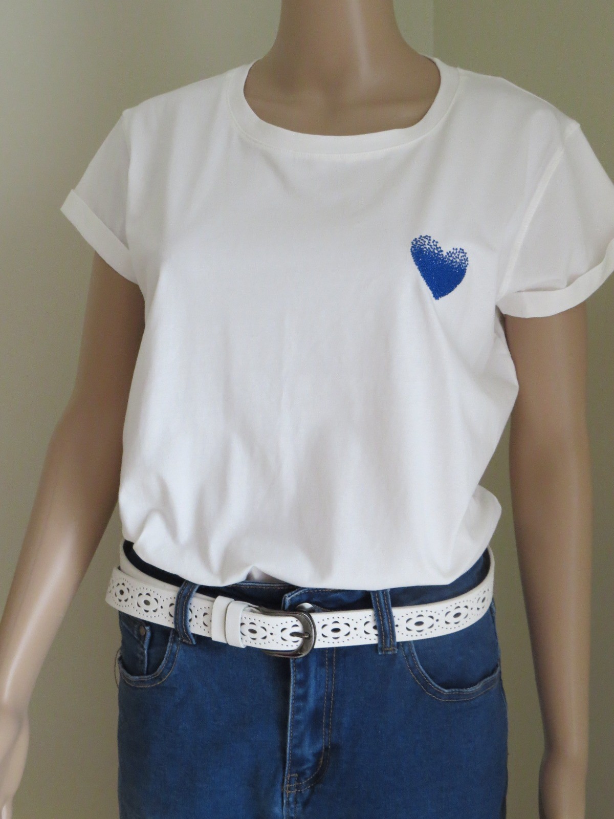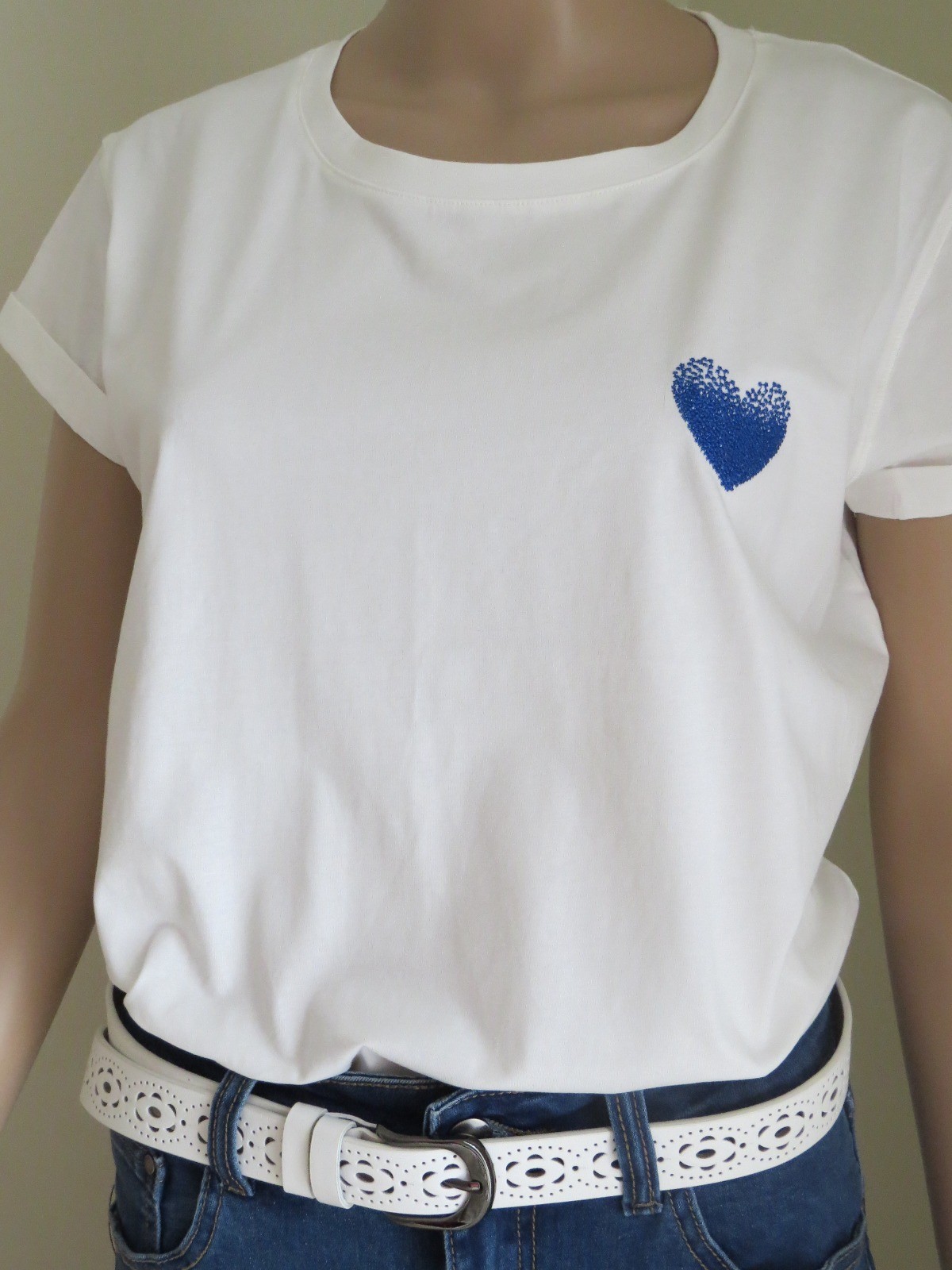 Tee-shirt blanc - Coeur bleu
