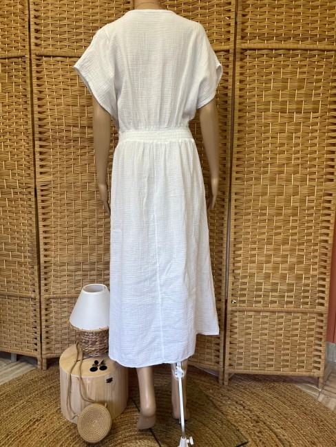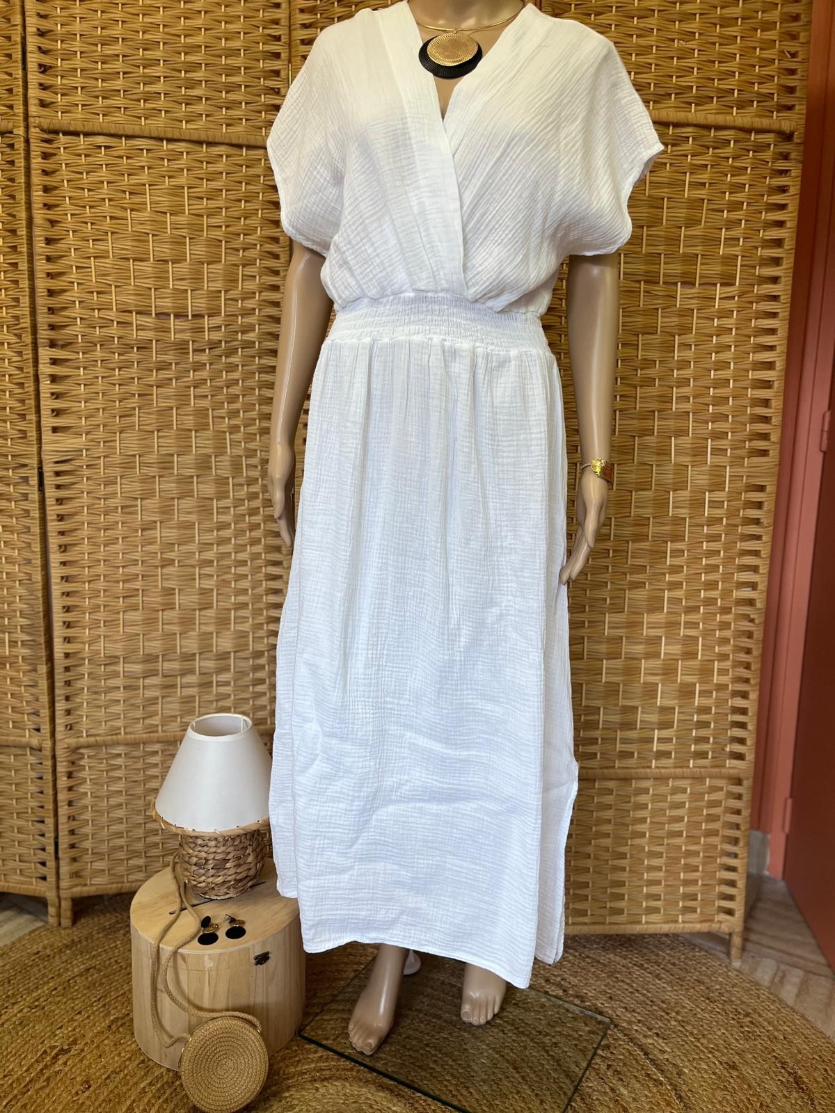 Robe longue gaze de coton - Blanc