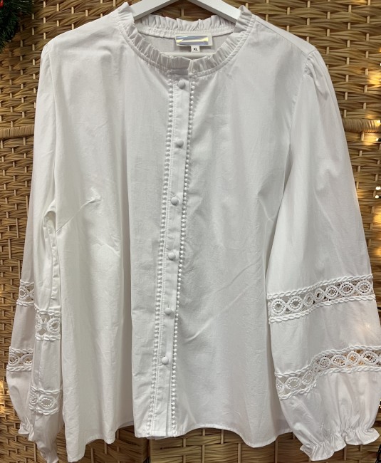 Chemise écru unie à col renaissance- Elégante, classique et détails raffinés.